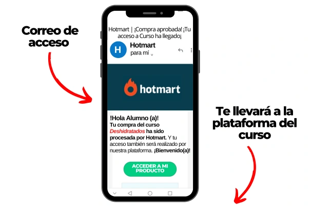 Una vez realices el pago el sistema automáticamente te enviará las instrucciones a tu correo electrónico para acceder a la plataforma donde podrás iniciar tu capacitación inmediatamente. Te llegará un mensaje de HOTMART con el acceso.