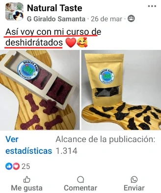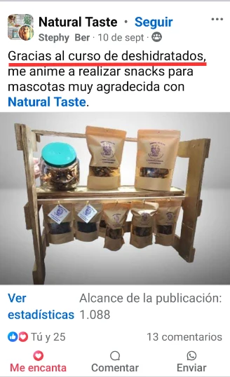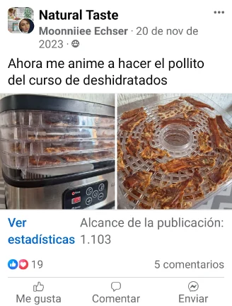 🙅Nunca estarás solo/a en este proceso, en nuestra formación contarás con nuestro grupo exclusivo de alumnos en Facebook Natural Taste 🤩, donde podrás resolver tus dudas y compartir tu experiencia con el programa, ya sea haciendo tus deshidratados para USO PERSONAL ó para EMPRENDER 😄